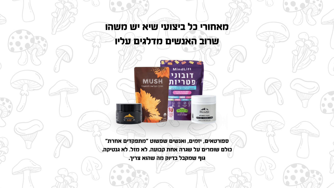 פטריות עוצמתיות שהטבע יצר, המדע הוכיח, ואנחנו שכללנו לתמיכה יומיומית באנרגיה, מיקוד ואיזון. החיבור המושלם בין מסורת עתיקה וטכנולוגיה מתקדמת, בדיוק כשאתה צריך אותו.