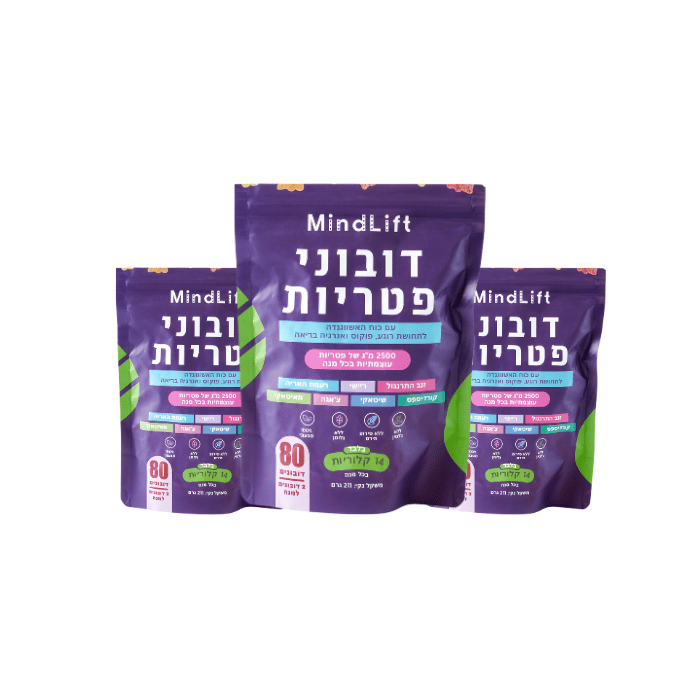 רוב התוספים מגיעים בצורת קפסולות, מה שגורם לרבים להפסיק לקחת אותם אחרי זמן קצר. MindLift מגיע בצורת גומי לעיסה בטעם פירותי, מה שהופך אותו לקל ונוח לשימוש, בלי טעם מר של כדורים ובלי צורך לזכור לקחת קפסולות. בנוסף, MindLift משלב מספר רכיבים עוצמתיים יחד – כך שאתם מקבלים תמיכה שלמה לרוגע, ריכוז ואנרגיה במוצר אחד.